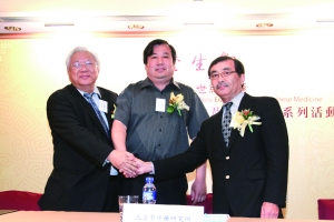 北京市中药研究所所长王大仟、日本制药工业株式会社社长入野信人及香港植物药研究所所长李函宓代表三方签署合作项目。
