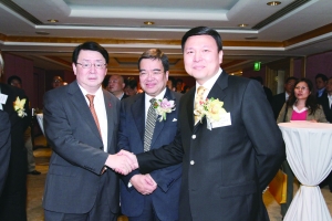 医管局主席胡定旭、卫生署署长林秉恩亦到场祝贺并与北京御生堂药业集团执行董事兼北京御生堂国药控股有限公司总裁白建疆合照。