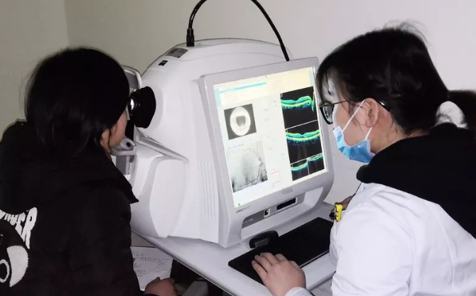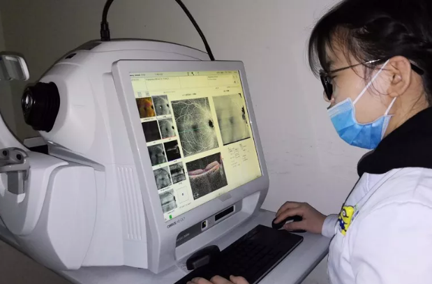 医生正在用蔡司高分辨血流OCT为患者做眼底检查