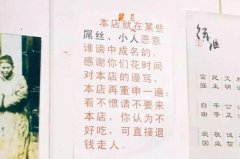 “为了担保面碗不带病菌,请不要将纸巾扔在面碗里”; “本店出头慢,心有急事、无耐性、...