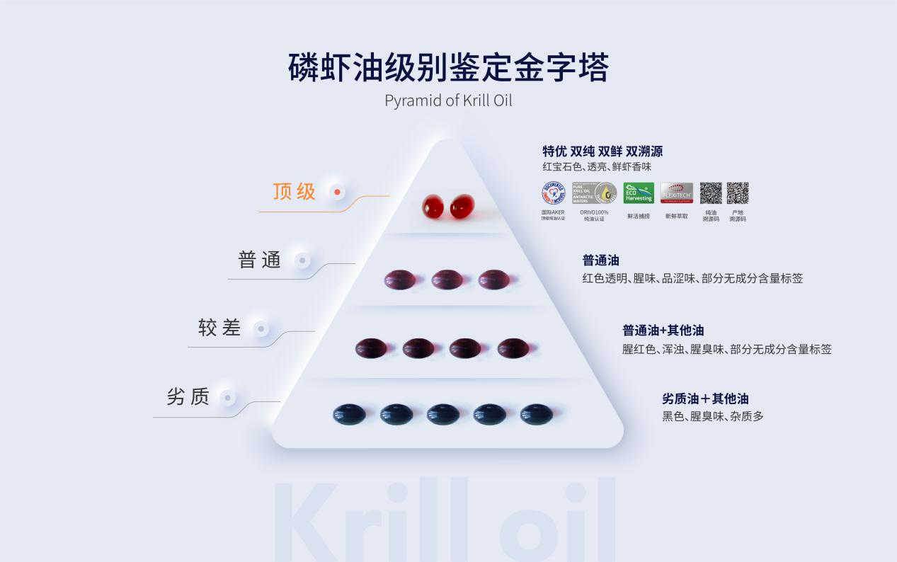 以更好的服务用户为出发点,备受用户信赖的国际医学营养品牌VIK创新性发布了“磷虾油级别鉴定金字塔”。目前磷虾油级别鉴定金字塔是行业比较认可的标准,从颜色、成分含量、味道等多方面对磷虾油进行鉴别分级,为消费者正确挑选优质磷虾油提供了一套专业有效的解决方案。
