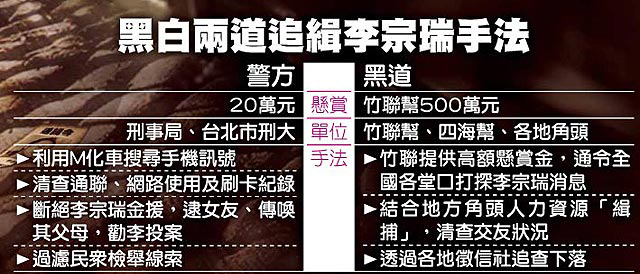 黑白两道追缉李宗瑞的方法(图片来自台媒)