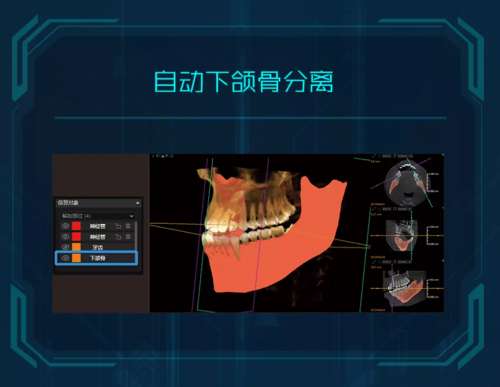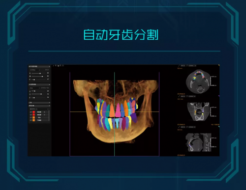 悟空CBCT作为其数字化影像终端,除了世界级的工业设计,还能更好链接DX云影、云芯模块;尤其在AI加持下,可“重构想象空间”,包括:种植体预警、自动神经管描绘、自动牙齿分割、自动下颌骨分离等海量应用。