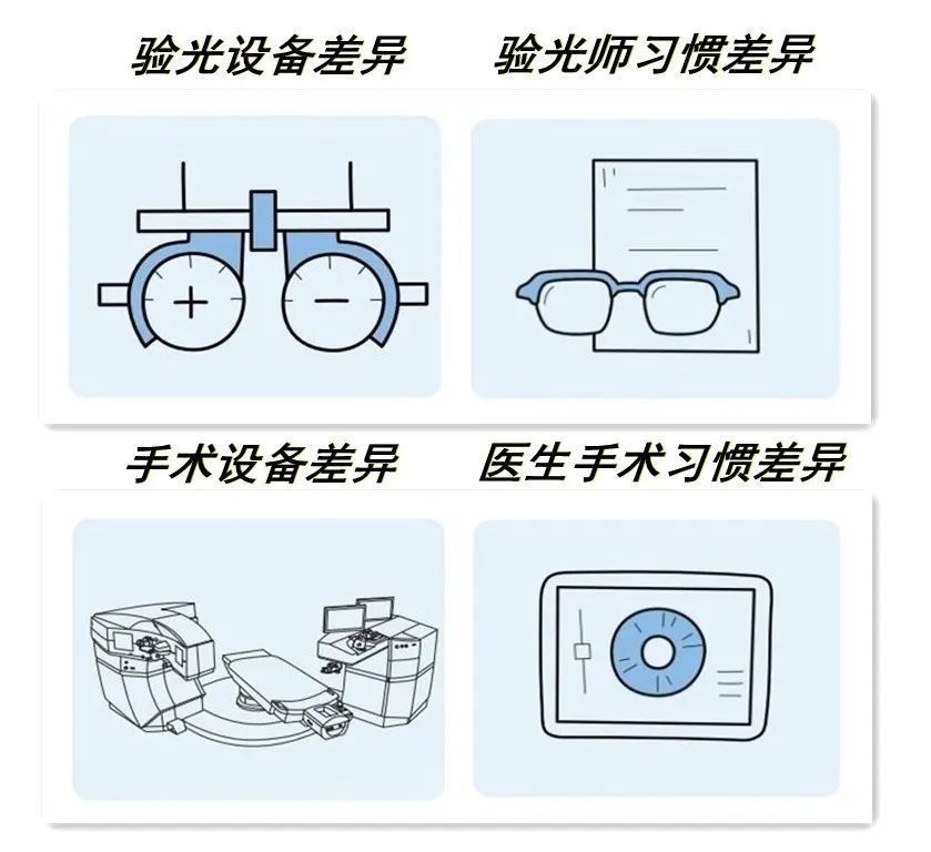 一台好的近视手术,从检查到手术的每一环节都至关重要。从术前检查到术前设计到实施手术这个过程会受到各种因素影响,除了个体差异,验光设备差异、验光师习惯差异、手术设备差异、医生手术习惯差异都是影响术后效果的因素。智能优化 四差趋零