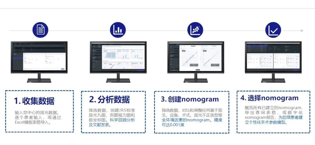 全飞秒精准4.0通过个性化Nomogram科学分析软件,会收集患者各方面的数据,随后对数据进行筛选回顾与量化分析,基于海量数据去调整各方面可能影响矫正精度的误差后,为不同医生建立起一组个性化用户专属Nomogram(预测模型),将临床效果用标准图表可视化地呈现在医生面前,帮助临床医生做更精细的术前设计,获得更贴近每一位患者适宜的矫正目标值!
